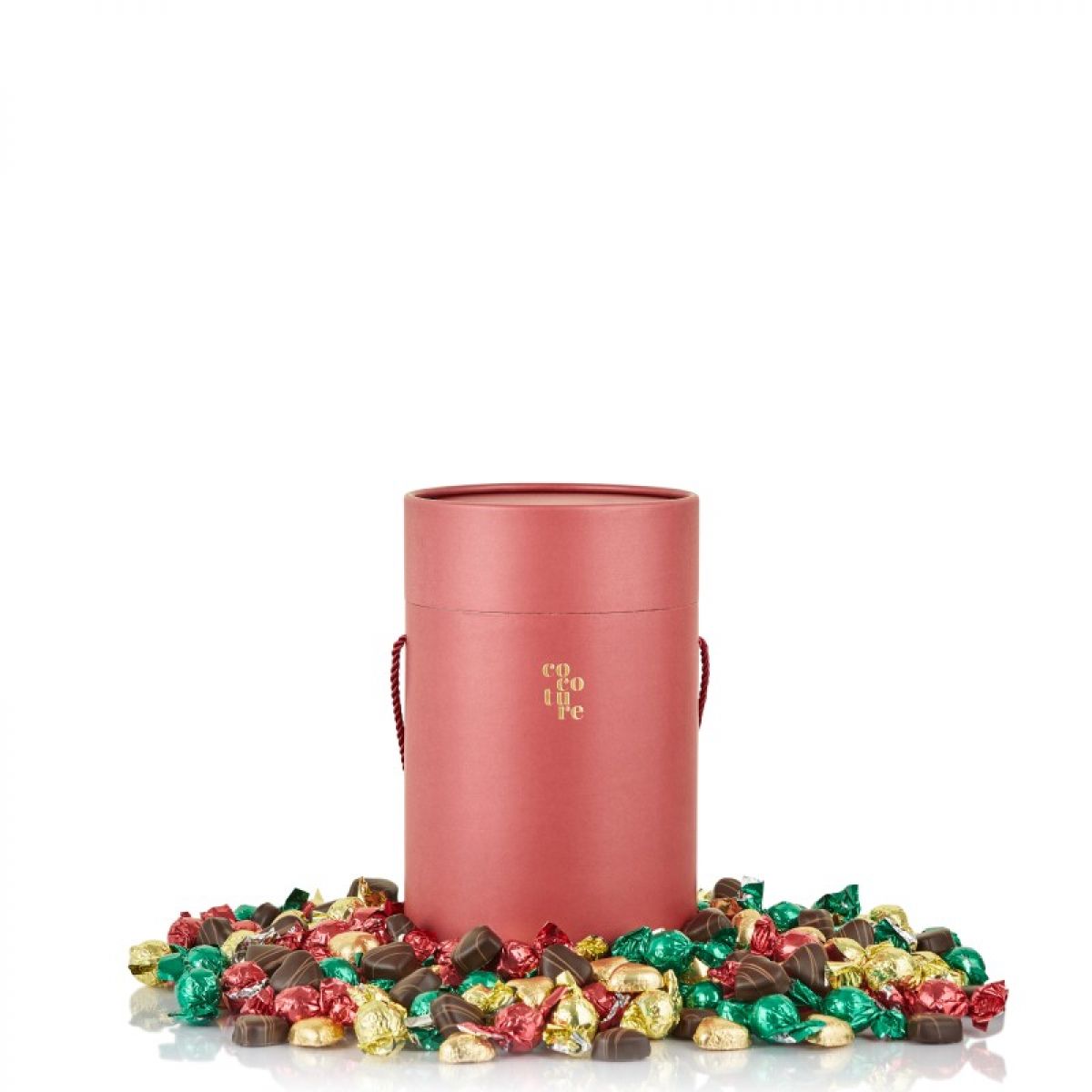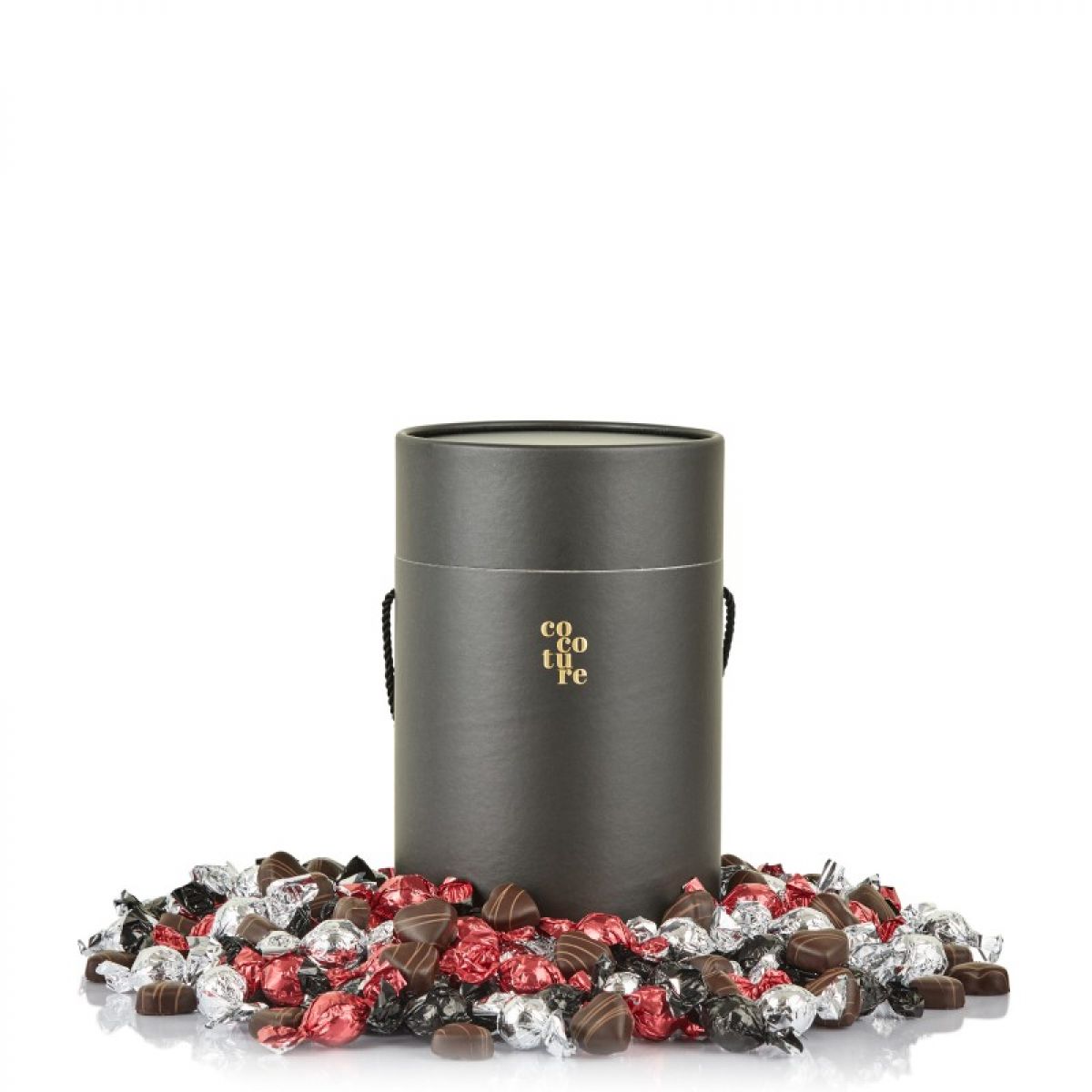Julemix: Luksus mix af marcipan hjerter, Cocoture fyldte chokoladekugler i kobber, lysebrun og sort.