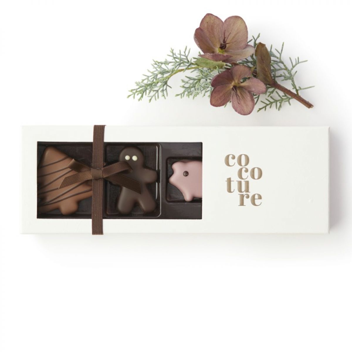 Stilfuld gaveæske med 3 stk. Julefigurer og dragéprodukter