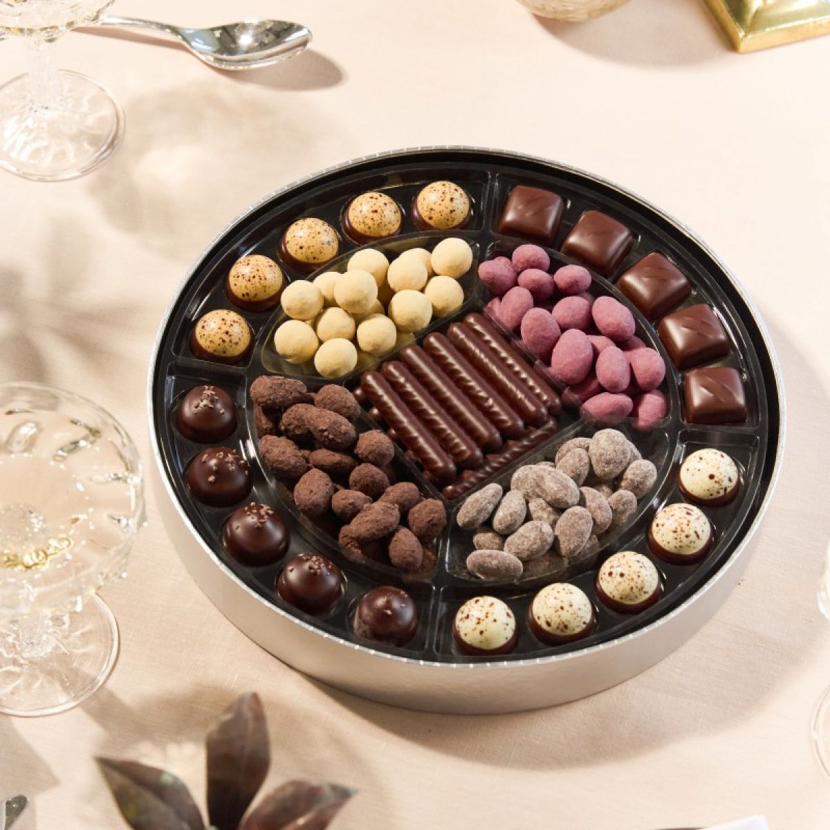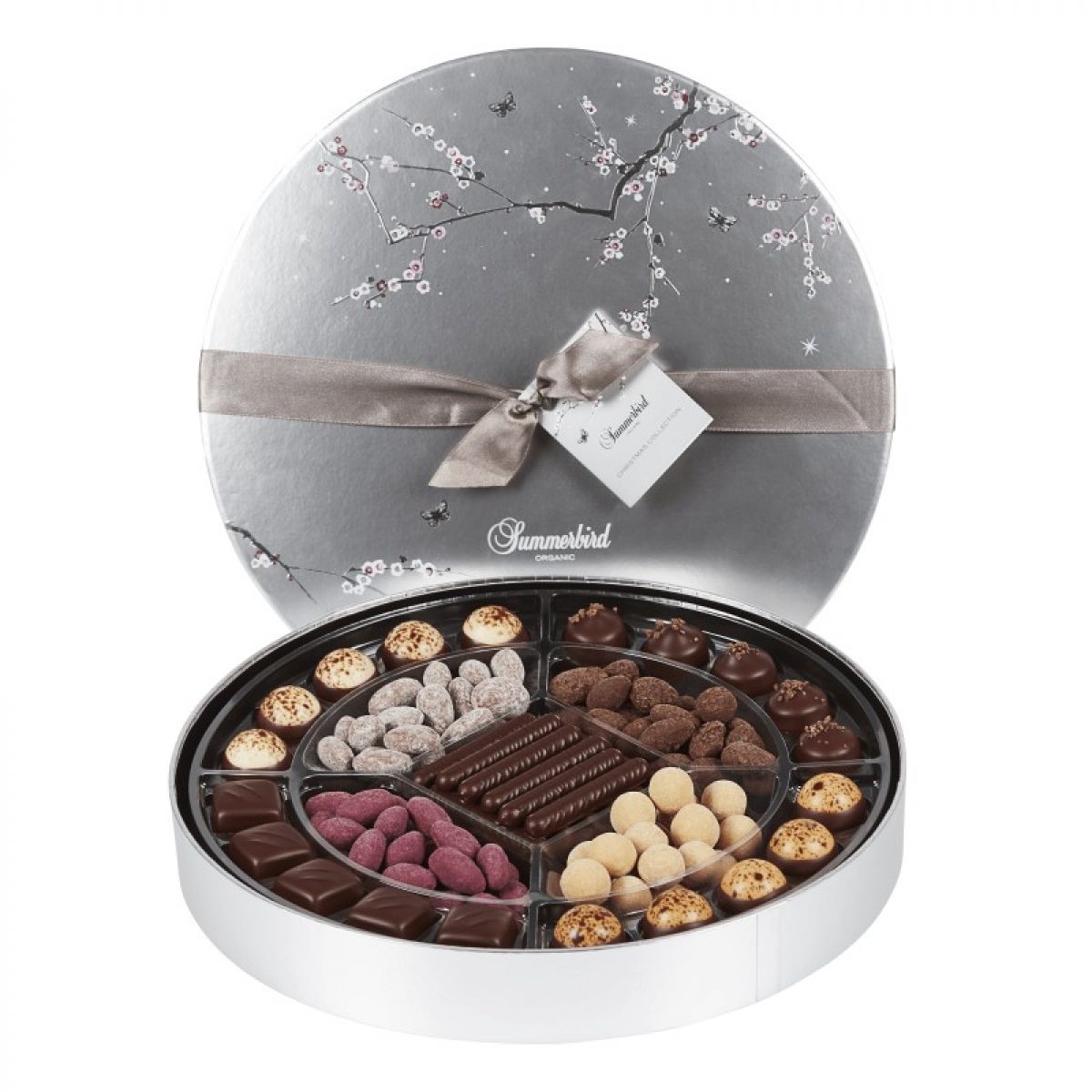 Æsken byder på en verden af velsmag i form af marcipan, lavet på stenvalsede middelhavsmandler, dragerede hasselnødder og mandler, fyldte chokolader og ren mørk chokolade.