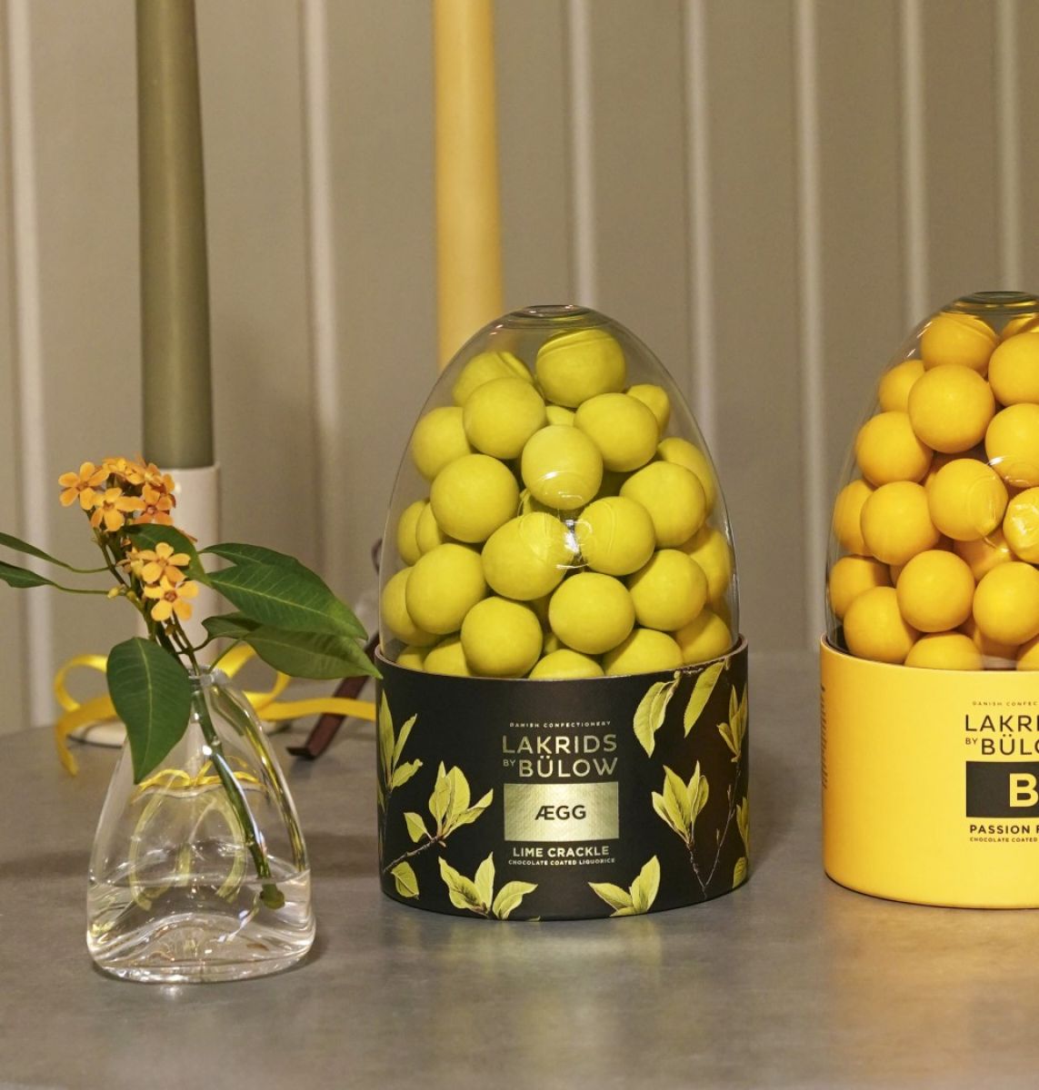 Pakker i en smuk æske, formet som et påskeæg. Med lakrids by Bülow monogram i låget.