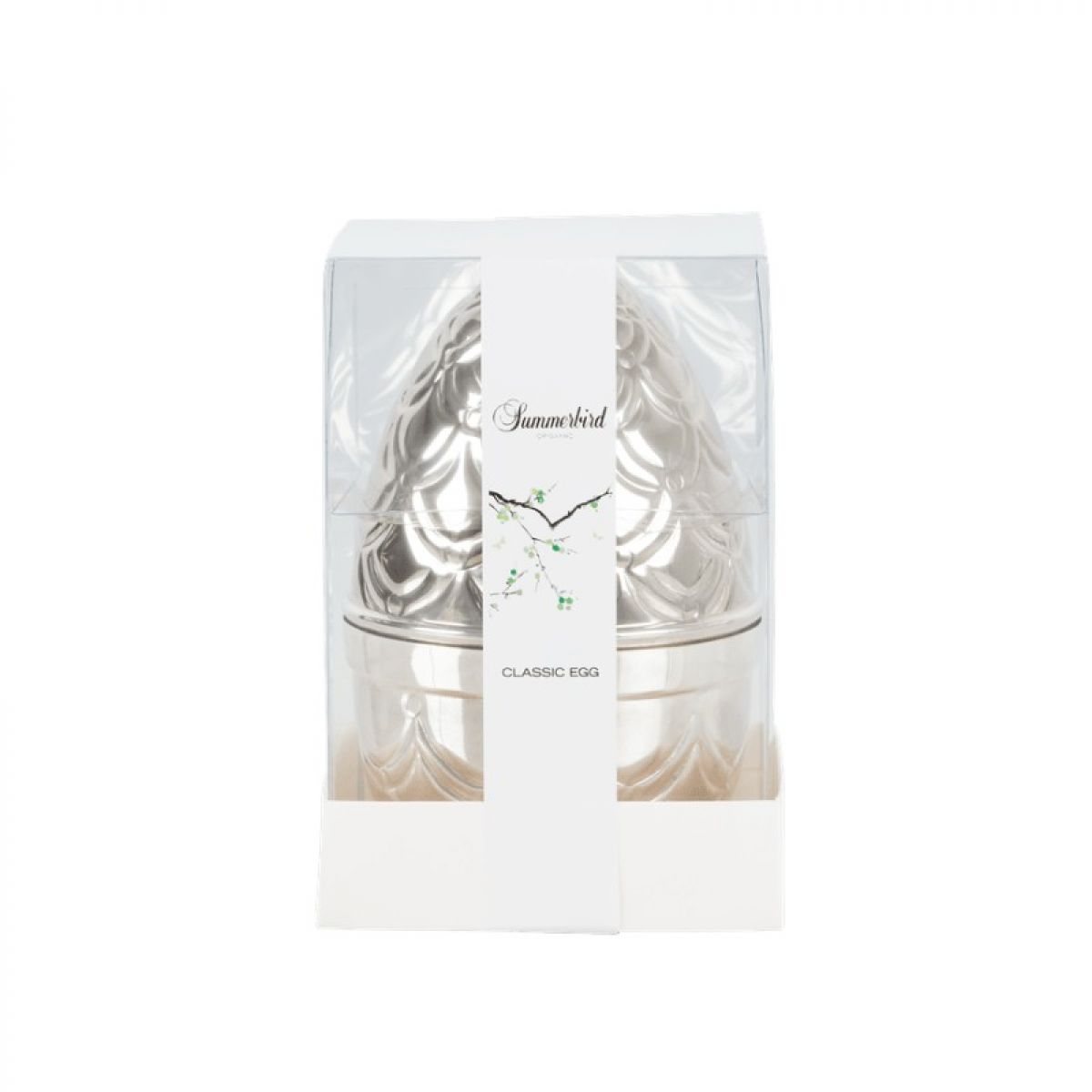 Summerbird Organic sølvæg: Dette ægte forsølvede tin-påskeæg fra Summerbird kommer hvert år med et nyt smukt præget motiv.