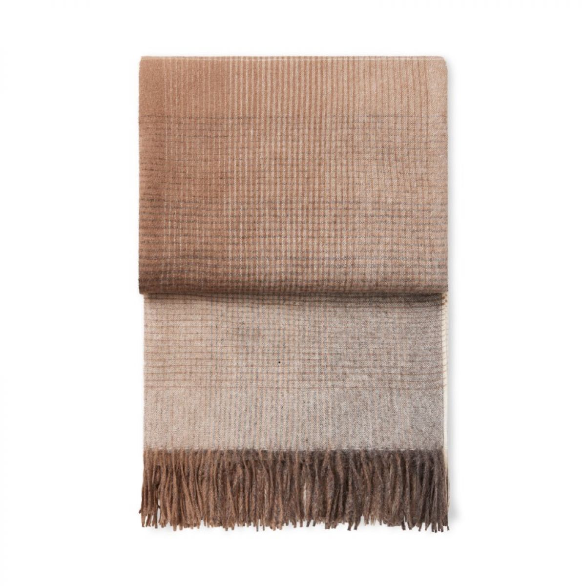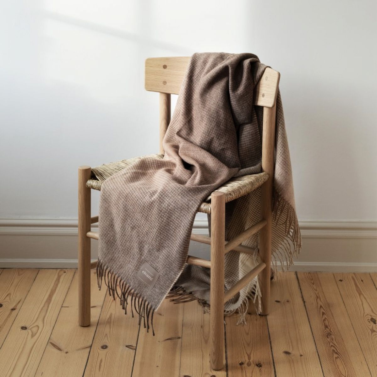 Hvor hav og himmel mødes. Horizon plaidens design skifter fra lys til mørk på en elegant, smuk og naturlig måde. Et utroligt smukt stykke håndværk – et sandt vidnesbyrd om en peruviansk vævers talent.