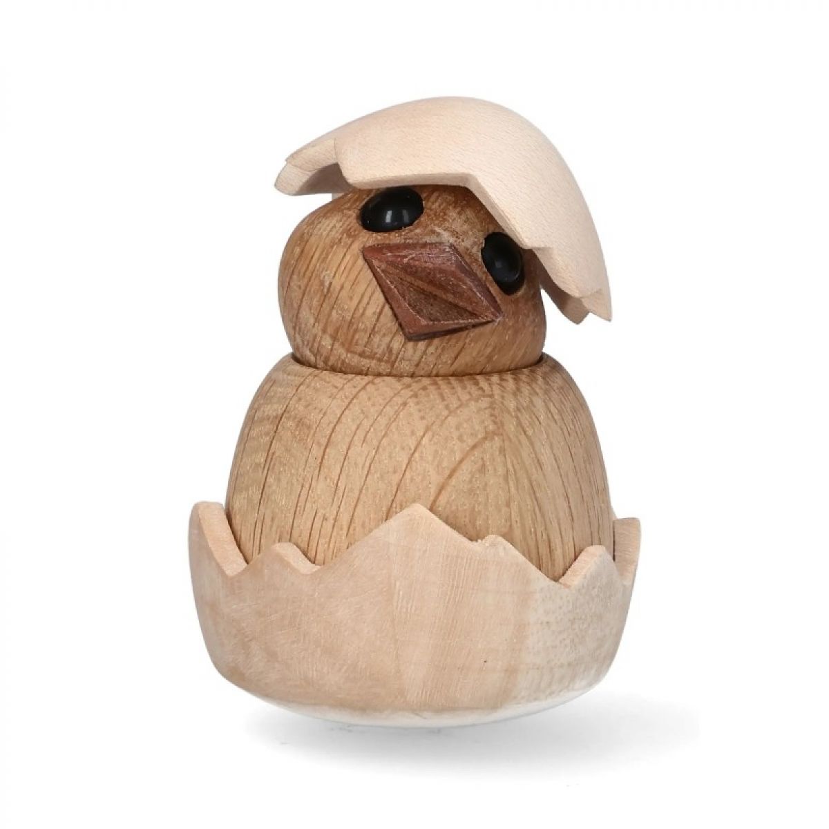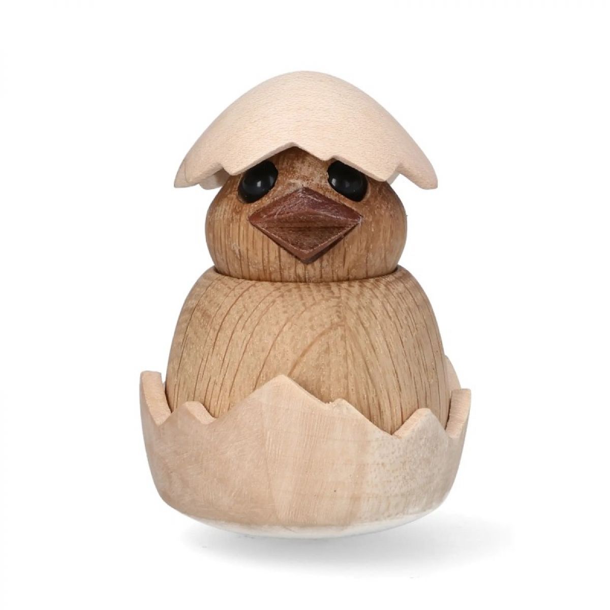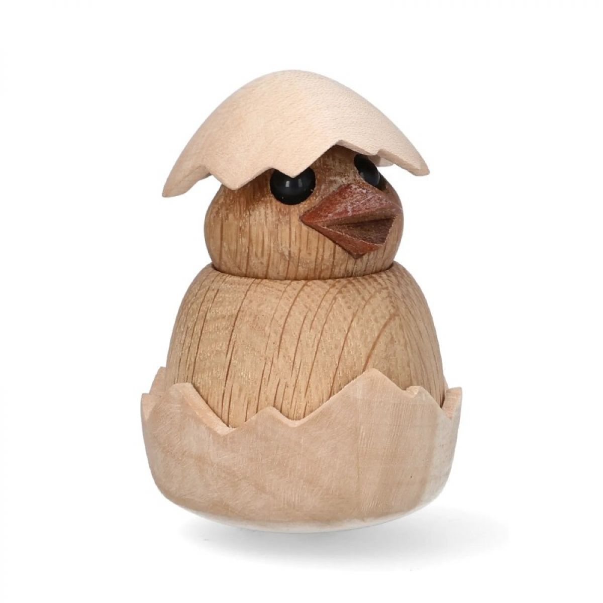 Chick er en sød og nysgerrig træfigur, der netop er klækket af sit æg. Med det fine æggeskalshylster og åbne blik bringer figuren forår, smil og lethed ind i indretningen – en kær gaveidé året rundt.